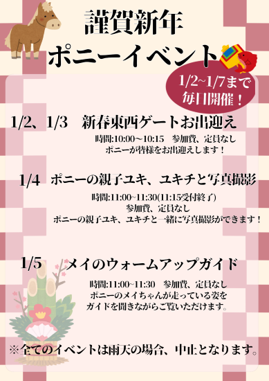 皆さんお久しぶりです!まなみなです! 今回はポニーブログになります! いよいよ年の瀬、来年は来る午年!ということで… 1/2~1/7までポニー達のイ···